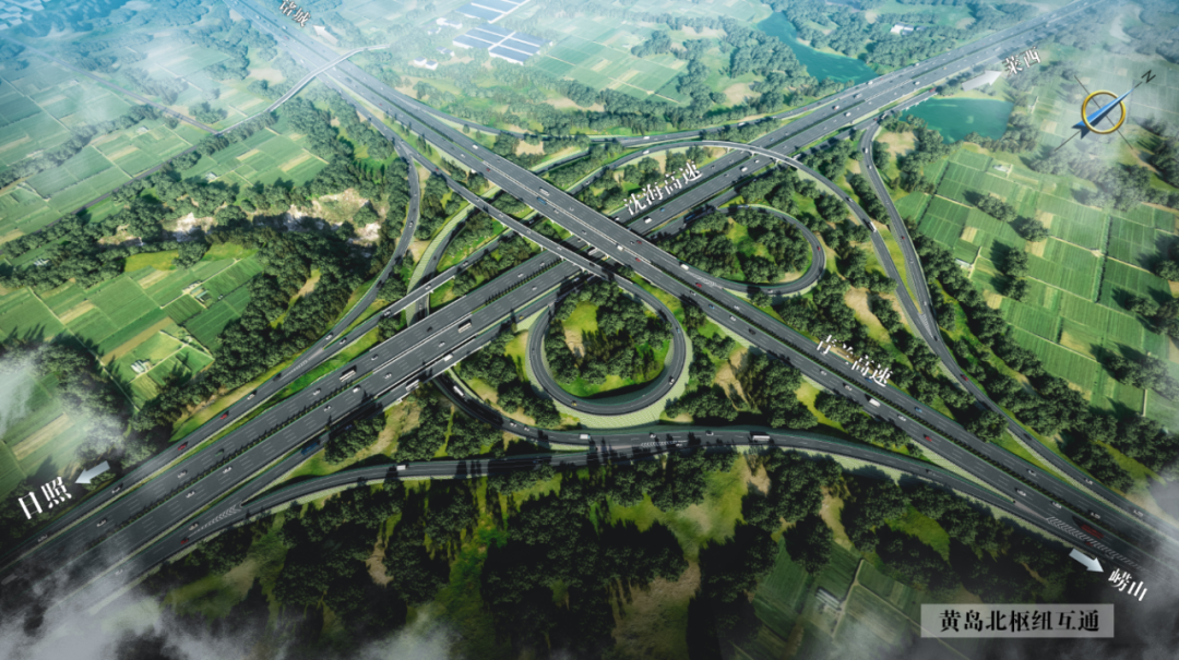 (图为沈海高速改扩建工程黄岛北枢纽互通效果图)