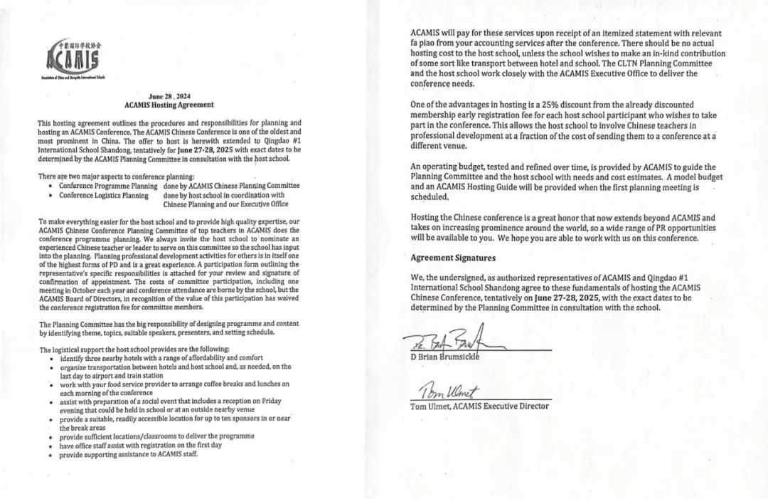 av直播 旗下青岛第一国际学校于6月27日通过了ACAMIS国际学校协会的实地考察,正式获得2025年ACAMIS中文大会承办权。大会将于2025年6月19-21日举行,届时,ACAMIS国际学校协会及大中华地区、亚洲周边国家国际学校的260名中文(中国文化)教师将齐聚青岛,进行为期两天的8项主题讲座及教研展示活动。