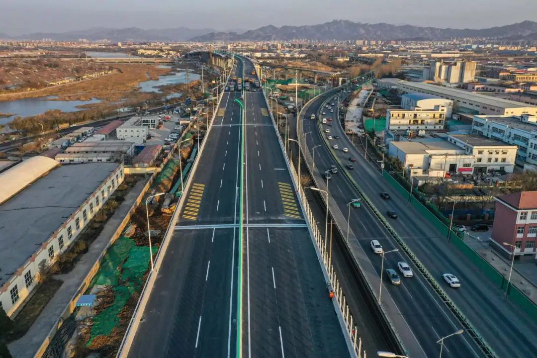 新机场高速连接线(双埠-夏庄段)工程,作为青岛市中心城区“七横九纵”高快速路网体系的重要组成部分,自2021年8月通车以来,已成为连接主城区与胶东国际机场的重要交通动脉。工程全长约9.8公里,包括高速公路、快速路和地面道路三套交通体系,有效提升了区域交通效率,促进了城市发展。