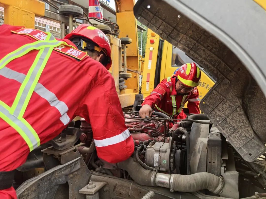 (图为清障救援技术人员检修作业车辆)