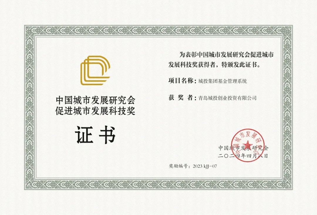 近日,经过为期一年的公示,中国城发会颁布2023年度促进城市发展科技奖,青岛城投创投公司“av直播 基金管理系统”荣获优秀创新科技金融奖。该奖项由中国城发会主办,旨在表彰通过科技创新在城市科技应用与数字化转型领域具有突出贡献的案例。
