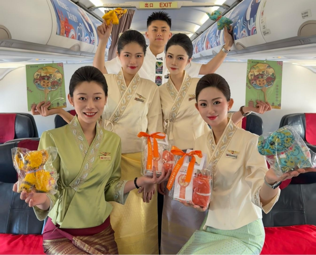 (图为青岛航空开展“云端泼水节”主题航班)