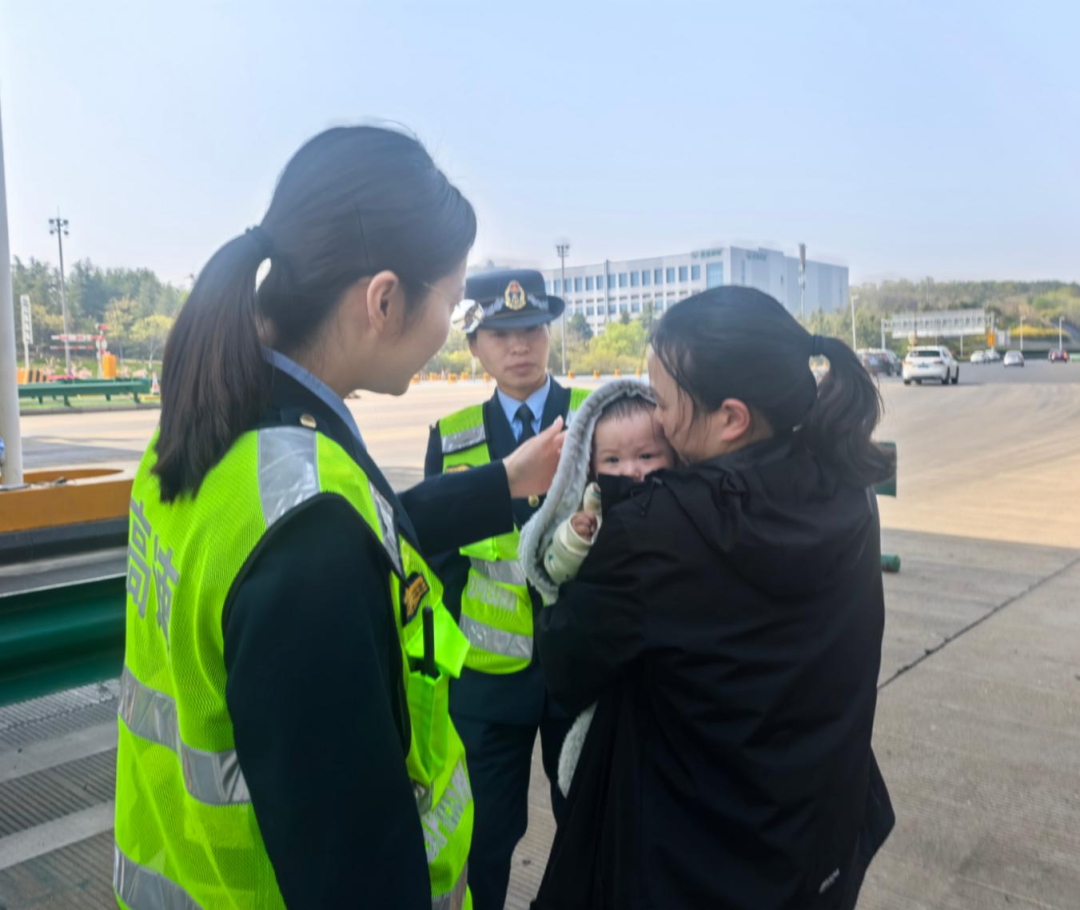 4月16日下午,一辆苏J牌照车停在收费广场,车内下来一位抱着婴儿的女士,神情十分焦急。收费站负责人李明与当班班长于洪爱看到后立即上前询问,得知该女士是独自从外省驾车来青探亲,因定位错误误入高速,由于幼儿高烧一直哭闹不止无法开车,家人因电话联系不上也心急如焚。