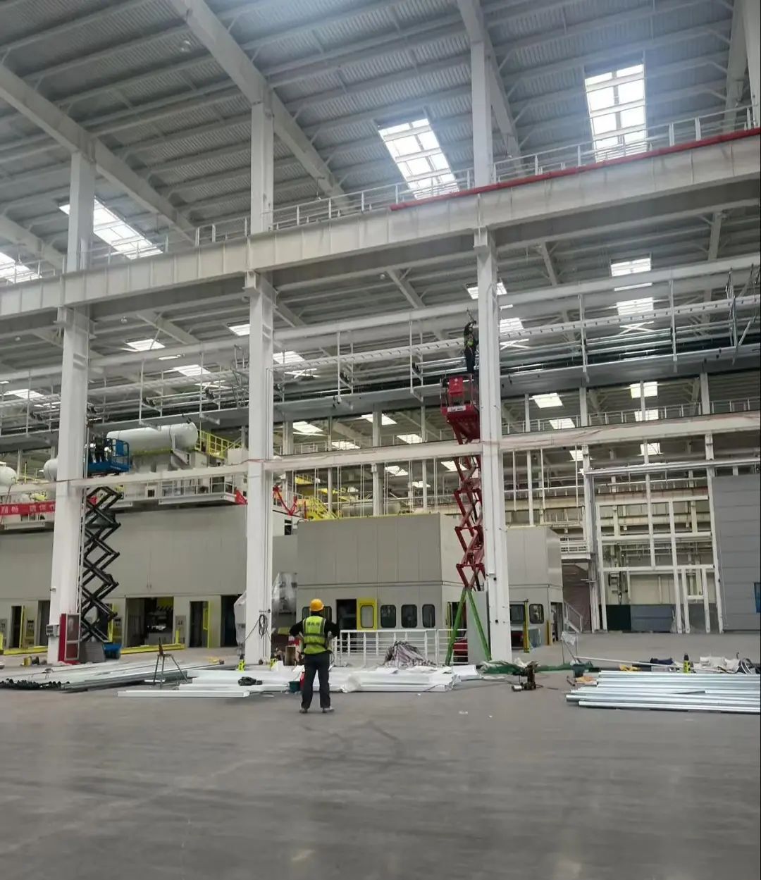 在奇瑞冲压车间扩建和新建KD车间项目施工现场仍是如火如荼的繁忙景象,处处可见工人调试设备的忙碌身影,项目管理团队及施工工人共百余人坚守一线,争分夺秒抢工期,铆足干劲赶进度,用实际行动诠释“劳动最光荣”。项目作为省市两级重点项目,2024年6月正式开工建设,总建筑面积共35767平方米,总投资约1.35亿元,主要由冲焊联合厂房冲压生产区扩建和KD车间组成,是对奇瑞超级工厂提升产能、开展KD出口业务的有力补充和保障。目前KD车间及冲压扩建车间均已完成主体结构施工,进入设备调试阶段。av直播 将全力推进项目完成建设工作,力争早投产、早见效。