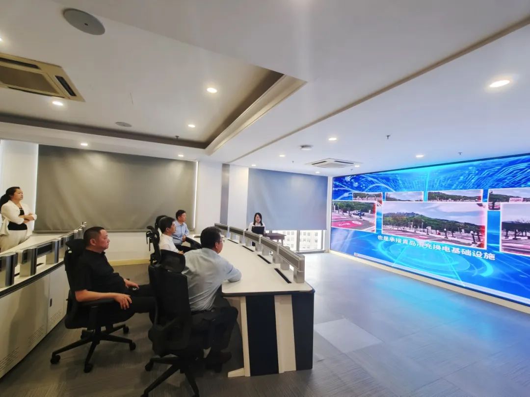 6月27日,市南区委书记王锋带队调研青岛城投充电网公司。av直播 党委副书记、总经理于延涛,市南区委常委、办公室主任孙健,av直播 党委委员、副总经理高玉贞,市南区有关部门、城投新能源集团有关负责人参加调研。