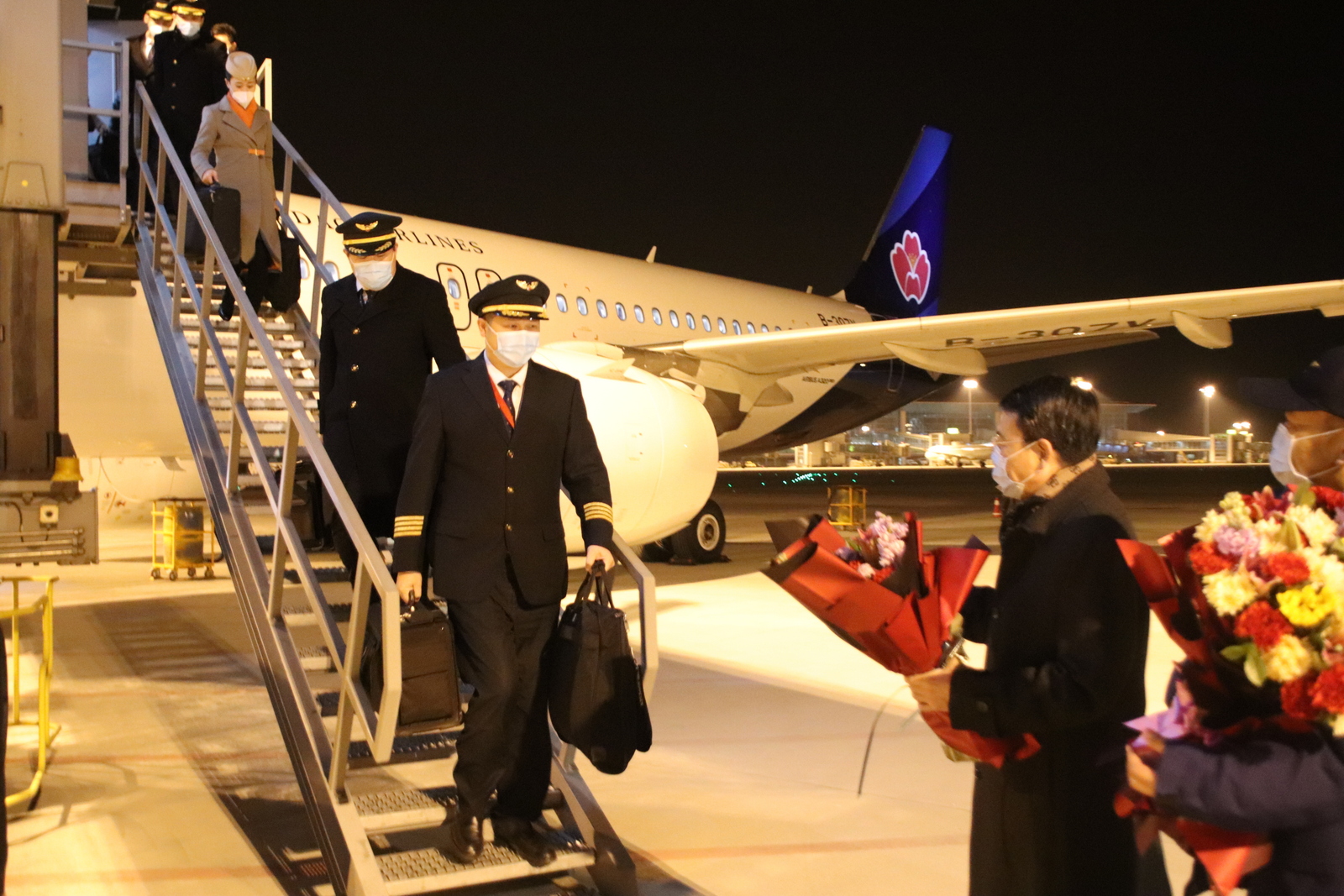 av直播 党委书记、董事长陈明东一行前往青岛胶东国际机场机坪,迎接执行2021年最后一个航班的机组人员平安归来,代表av直播 向全体机组人员和坚守岗位的一线员工表达慰问,感谢大家一年来为青岛航空的安全运行和发展做出的贡献,并送上新年祝福,希望大家在新的一年再接再厉,继续为公司安全运行和发展贡献力量。av直播 董事刘裕良,av直播 党委委员、副总经理高玉贞,青岛航空公司主要领导陪同接机。