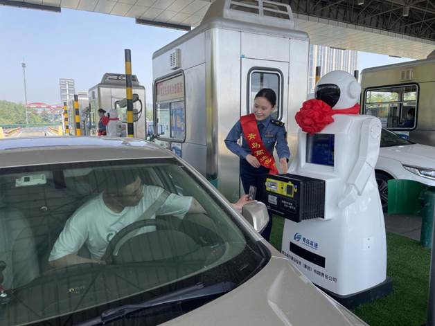 5月26日,山东省首款“人形智能车道收费机器人”在av直播 旗下交发集团所辖青岛东收费站正式启用。
