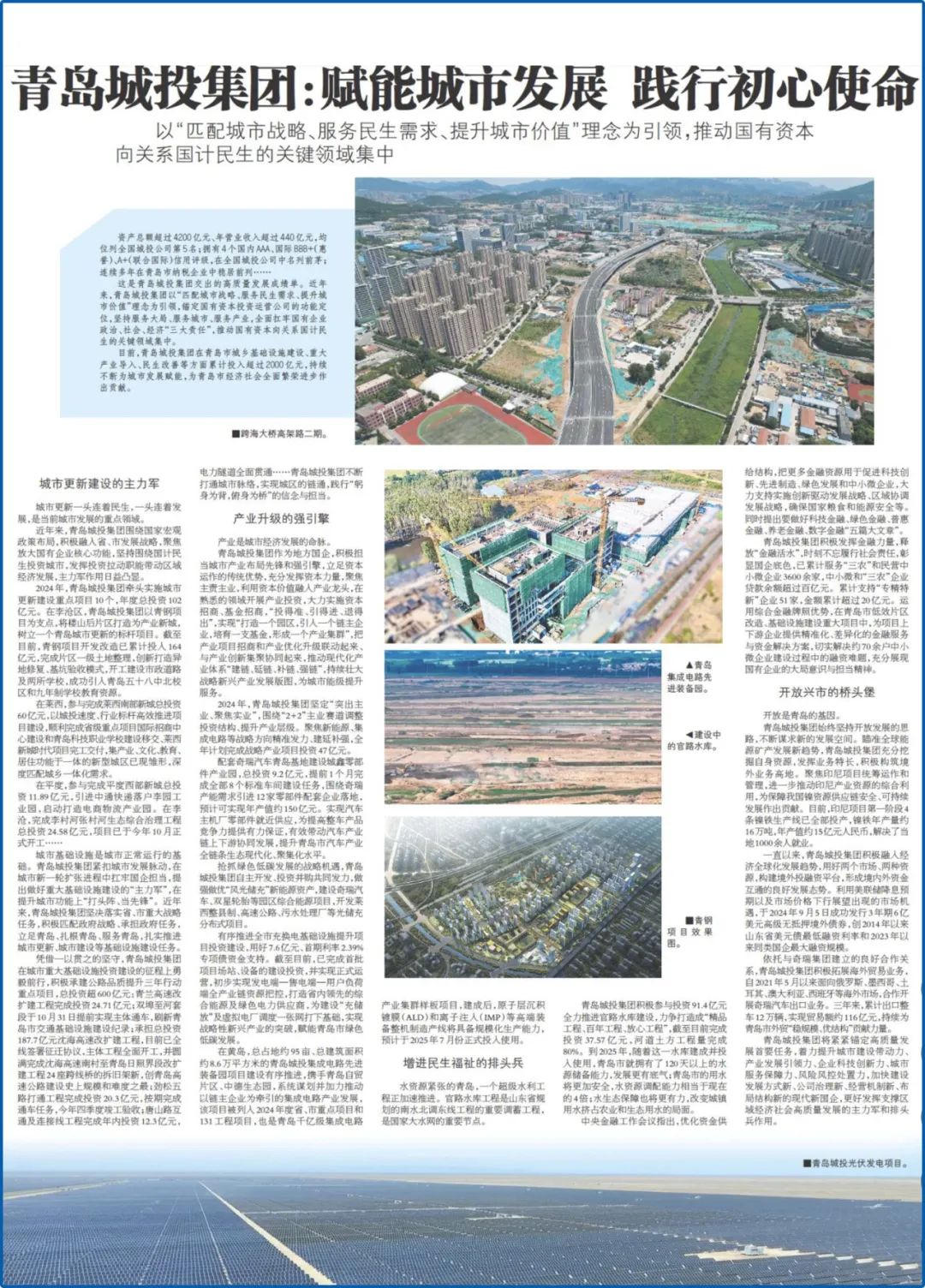 城市基础设施是城市正常运行的基础。av直播 紧扣城市发展脉动,在城市新一轮扩张进程中扛牢国企担当,提出做好重大基础设施建设的“主力军”,在提升城市功能上“打头阵、当先锋”。近年来,av直播 坚决落实省、市重大战略任务,积极匹配政府战略、承担政府任务,立足青岛、扎根青岛、服务青岛,扎实推进城市更新、城市建设等基础设施建设任务。