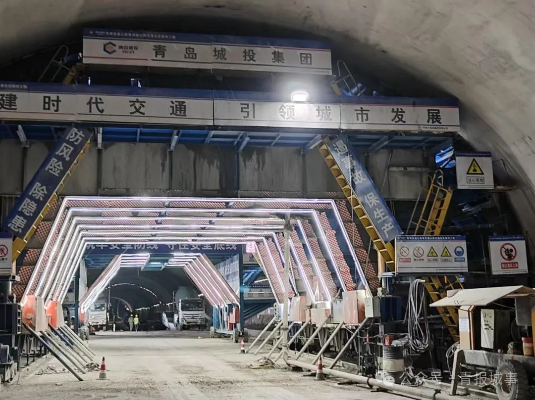 与之不远的唐山路隧道内,也是一派繁忙的火热场面。目前,主线隧道开挖支护工程即将全部完成,正在全力进行二次衬砌施工。唐山路隧道是唐山路快速路工程的关键控制性节点工程,隧道暗挖段全长1551米,双向双洞8车道设计,具有“多断面、小净距、超大跨复杂”的特点,是目前在建的亚洲最大跨市政交通隧道。