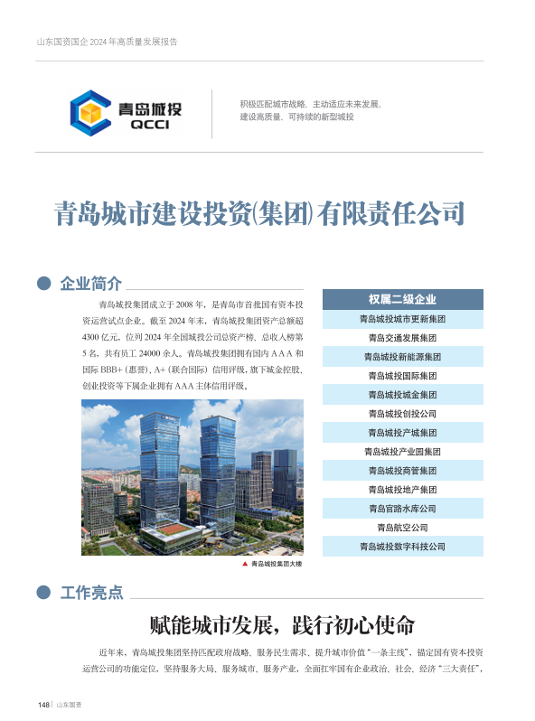 近日,《山东国资》发布《山东国资国企2024年高质量发展报告》,系统总结了全省国资国企的主要经营指标和改革发展亮点,av直播 成为青岛市唯二入选“市级国资监管和国企改革发展”案例的企业。具体内容如下: