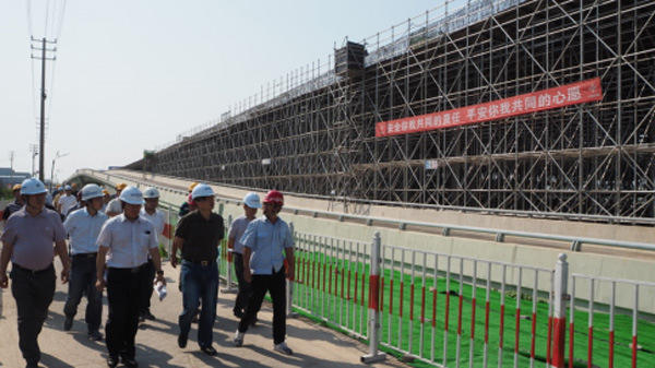 在全国第十六个“安全生产月”来临之际,为检验集团应急救援的快速反应能力,锻炼应急队伍,6月14日下午,集团安委会主办、工建集团承办的av直播 《生产安全事故综合应急预案》应急演练在太原路跨铁路高架桥工程项目展开。集团领导于志军副总经理、工建集团董事长幺子寅及集团相关部门、各产业集团、直属公司分管领导及安全生产主管人员等60多人,到场观摩了演练全过程。