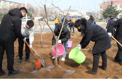 3月11日,集团联合团总支、城市更新集团共同举办的“植树造林添新绿,共建生态新城区”植树活动在李沧区青钢片区拉开序幕。青钢片区是av直播 开发建设低效片区,修复污染土壤,实现“腾笼换鸟”的标杆之作,此次在青钢片区举办植树节活动具有重要意义。活动现场,20余名团员青年三五成组、挥锹扬锄、培实新土、取水浇灌,各个环节衔接有序。最终在大家的汗水和欢声笑语中20株树苗迎风而立,让原本空旷的土地上点缀了一份绿色,焕发出勃勃生机!