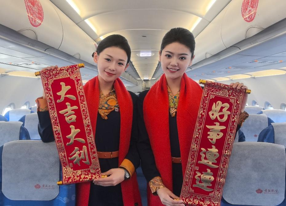 春节期间,av直播 旗下青岛航空公司先后在青岛飞往曼谷等多个航班上举办了以“云端迎蛇年 欢乐庆新春”为主题的新春机上活动,为旅客送上新春祝福,让归乡途中满是年味与温暖,与广大乘客共同祈愿新的一年国泰民安,岁月静好、幸福常伴。