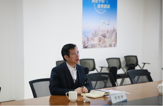 (图为青岛航空党委委员、总裁吴龙学作交流发言)